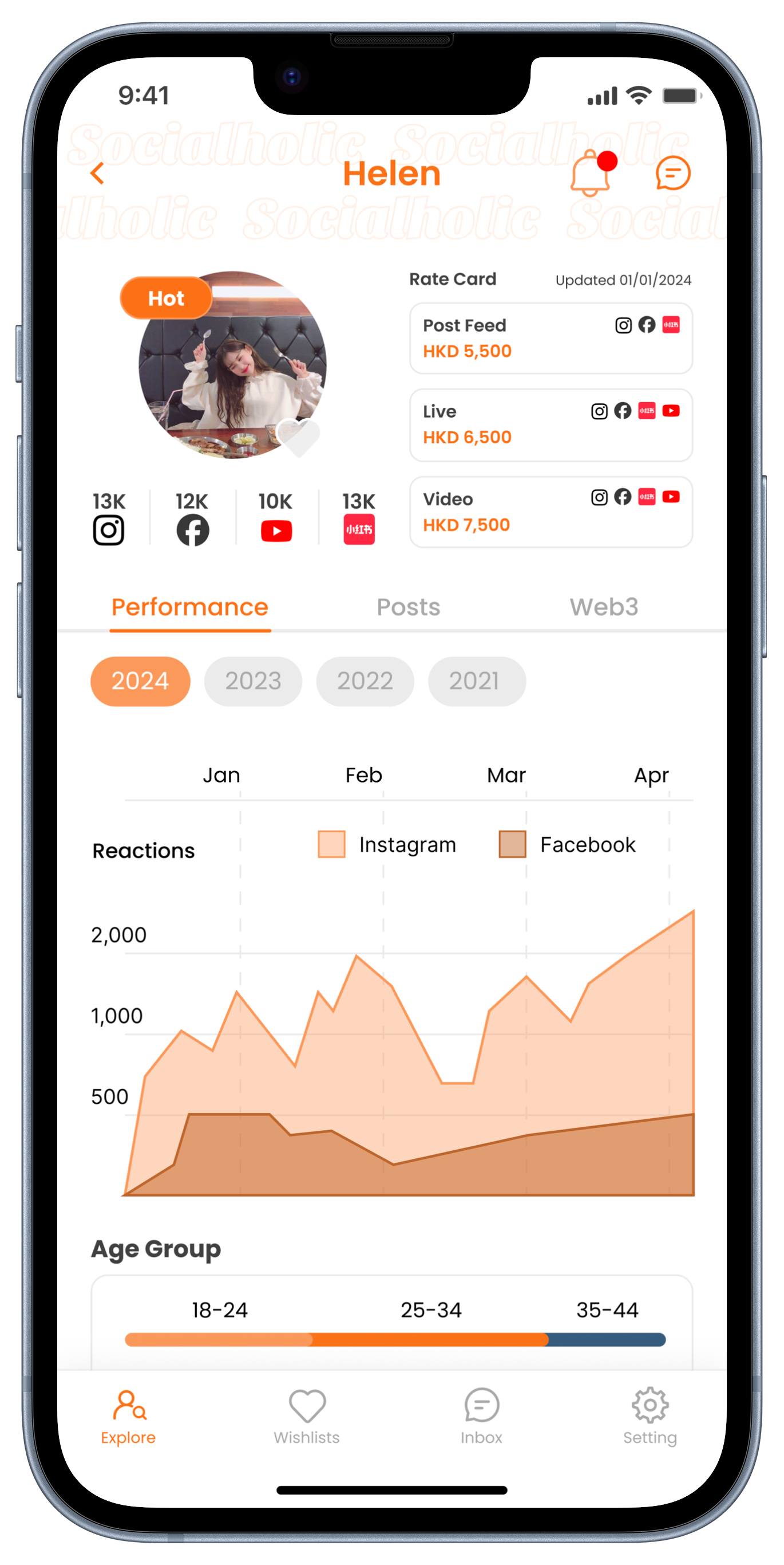 Socialholic是第一個以AI驅動的社群行銷平台,幫助企業尋找合適的影響者群體,預覽他們的作品,監控他們的表現,並實現更好的社群行銷目標。